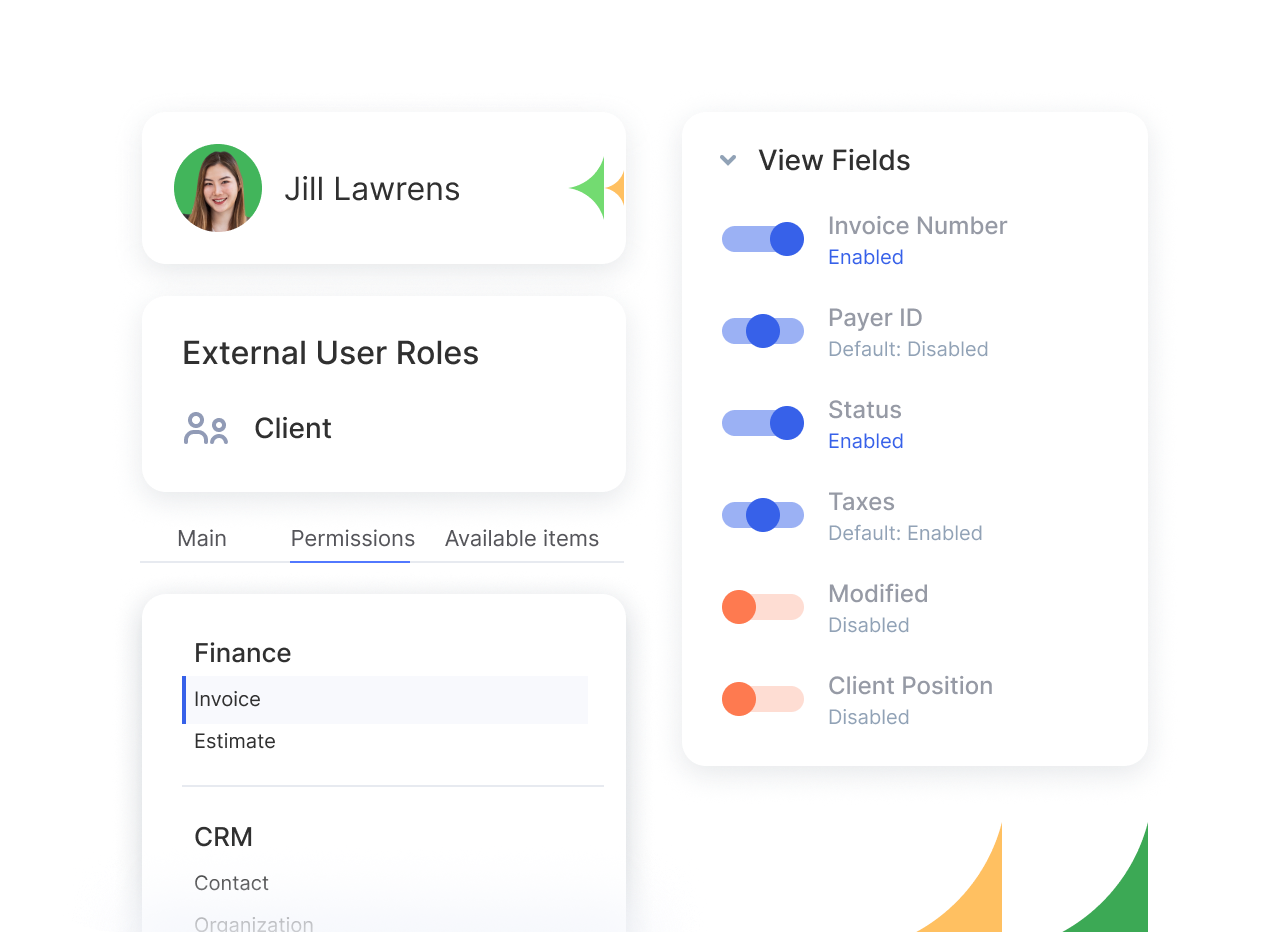 Você tem controle total. Ative ou desative recursos específicos dependendo do cliente. Talvez você queira que eles aprovem orçamentos, mas não vejam as tarefas exatas do projeto. Você pode fazer isso. Dê a eles o nível exato de visibilidade necessário para que queiram trabalhar com você, sem expor suas metodologias de gestão internas.