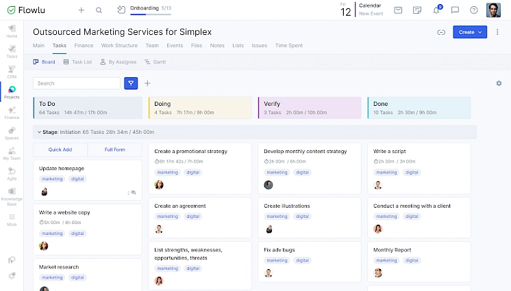 Flowlu is designed to make running several different companies easier. You can set up all of our tools and reports to work for each of your seperate businesses. No need for different accounts, just separate your businesses and run them from the same interface.