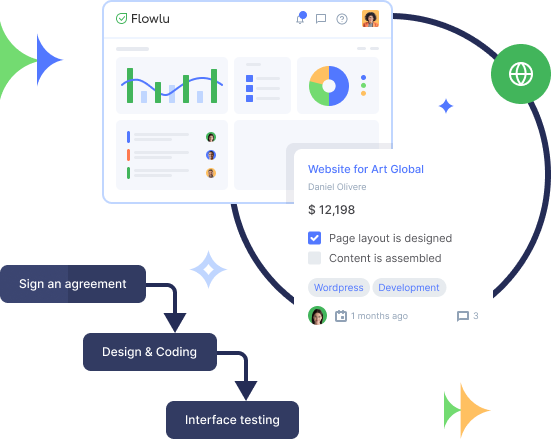Our app takes all of Flowlu’s functions to your mobile device. Be able to lead your team, keep customers happy, and work on projects no matter where in the world you are. Always know what deadlines are approaching and what needs to get done.