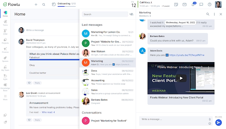 Use Flowlu to collaborate with your team on any project. Just add team members to the projects they should work on. Our software gives you the technology to brainstorm together, solve problems, and create virtual meetings. See how long employees have been working on projects, and what they’re charging you.